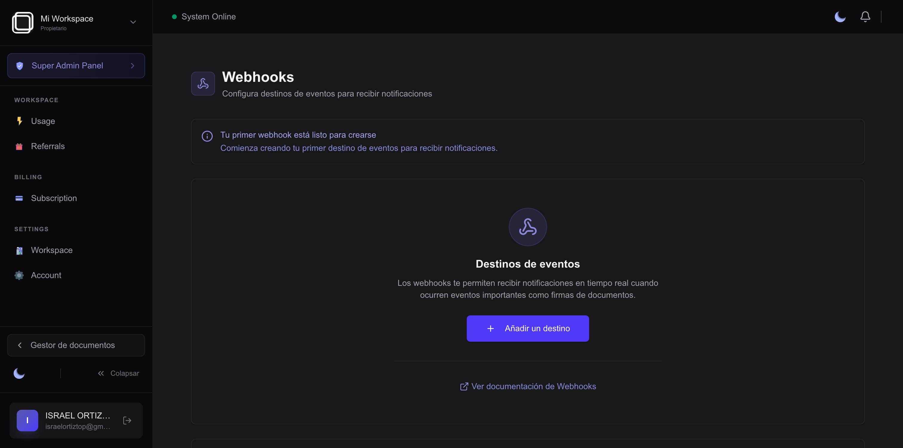 La forma más fácil de crear un webhook es desde el Dashboard de AllSign.